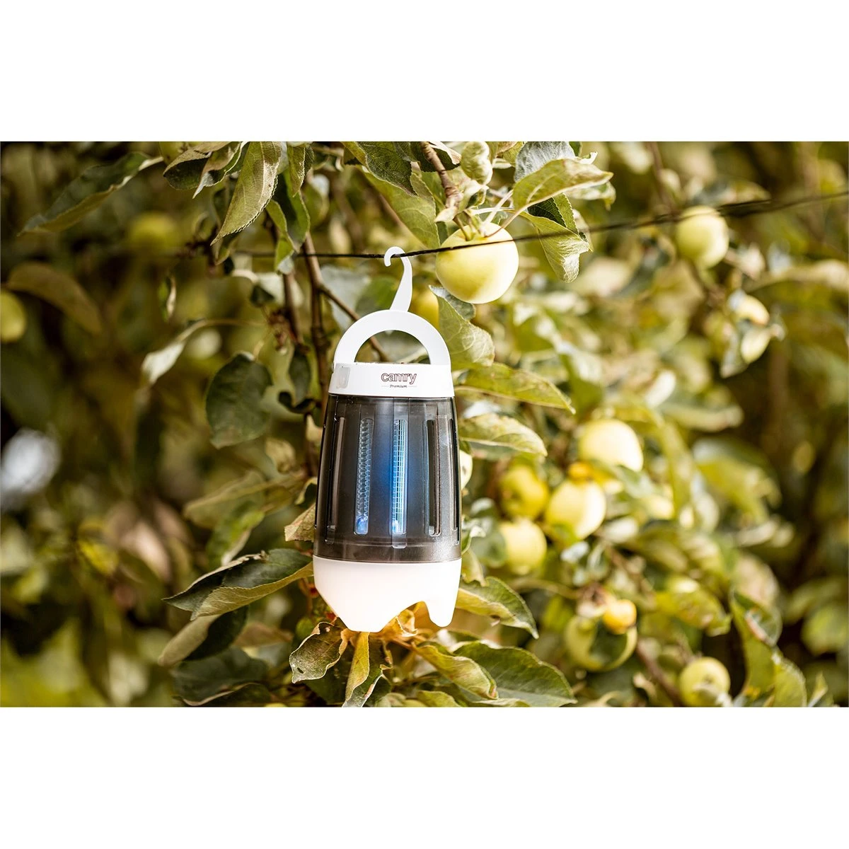 Disfruta de una velada perfecta en tu terraza, jardín o en tus vacaciones en camping sin miedo a las molestas picaduras de mosquito o de otros insectos voladores. La lámpara anti mosquitos CR 7935 atrae con luz ultravioleta a todo tipo de insectos y los electrocuta con alto voltaje, es segura para los humanos ya que funciona sin necesidad de productos químicos y no emite sustancias nocivas, su radio de acción es de 40 m2. Además cuenta con una luz LED de uso independiente para alumbrar mientras te protege y disfrutas del aire libre. La lámpara es recargable, su batería de 2000 mAh ofrece un tiempo de trabajo de 10-16 horas dependiendo del número de descargas eléctricas, tiene un gancho para colgarla fácilmente donde necesites.