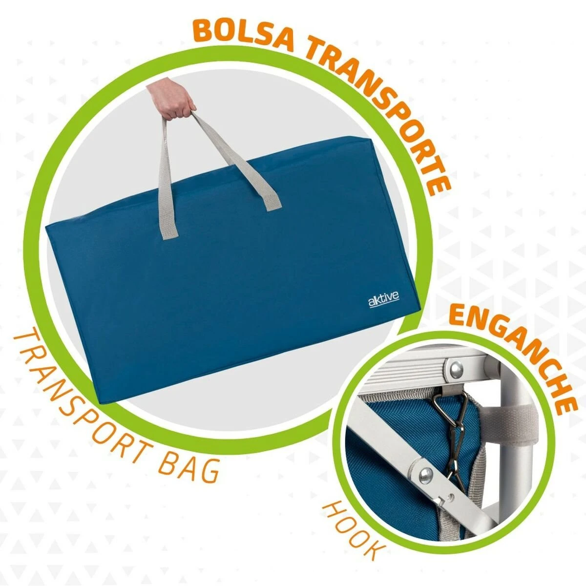 - Ligero y estable: estructura de aluminio (19 mm cubierto por un tejido impermable de PVC 300D unidos con cintas de velcro en la base, tacos antideslizantes