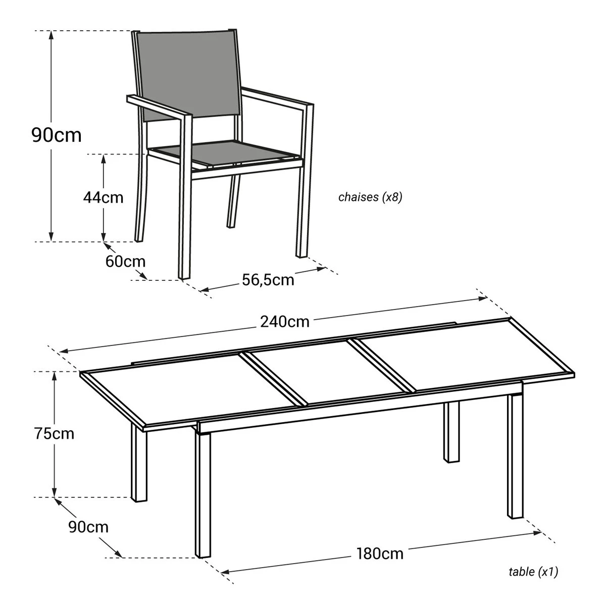 – Mesa extensible : L 180/240 × An 90 × Al 75 cm