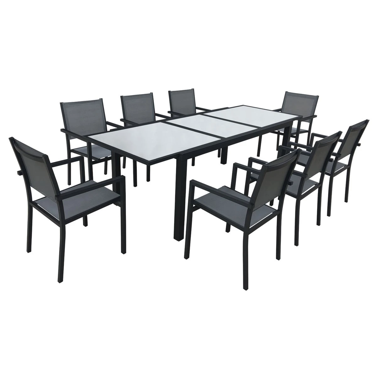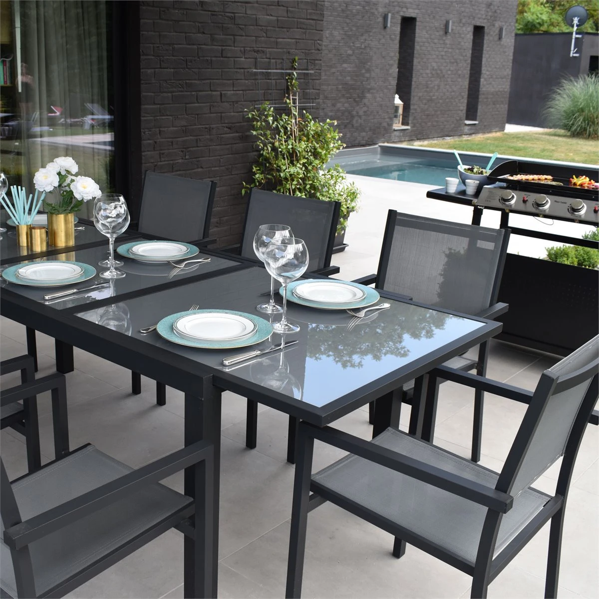 El conjunto de muebles de jardín FIRENZE no sólo es muy moderno con su diseño elegante y sus colores chic, sino que también es muy práctico gracias a su mesa extensible que puede ampliarse de 180 a 240 cm, permitiéndole sentar a 2 invitados más. La elegante forma de este salón se adapta tanto al interior como al exterior.