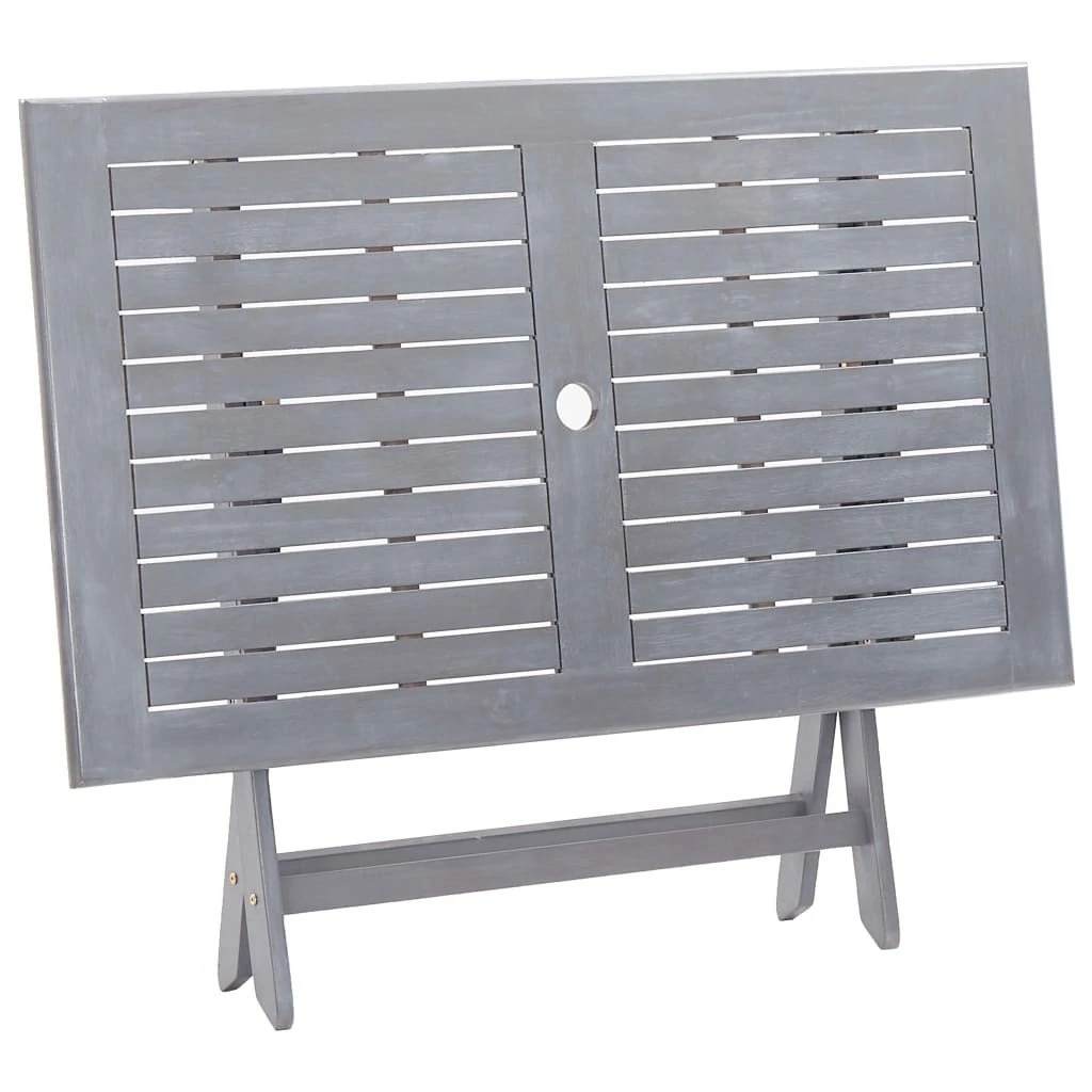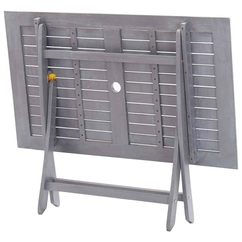 Este práctico y a la vez elegante conjunto de comedor de jardín de madera es perfectamente adecuado para usarlo al aire libre y será el foco de atención de tu jardín, terraza o patio. Tanto la mesa como las sillas están hechas de madera maciza de acacia con un acabado gris deslavado. Son resistentes a la intemperie, duraderas y fáciles de limpiar con un simple paño húmedo. La robusta estructura de madera hace que este conjunto sea muy estable y seguro. Y además te ofrece todo el confort y es muy práctico para pasar tiempo en él con tu familia y amigos. Además, la mesa y las sillas son plegables para que puedas transportarlas y guardarlas fácilmente si no las usas. La entrega incluye 1 mesa y 6 sillas de comedor. Color: GrisMaterial: Madera maciza de acacia con un acabado gris deslavadoDimensiones de la mesa: 120 x 70 x 75 cm (largo x ancho x altoDimensiones silla (con reposabrazos: 54 x 57 x 91 cm (ancho x profundo x altoDiseño plegable para un fácil almacenamiento o transporteLa entrega incluye 1 mesa y 6 sillas plegables