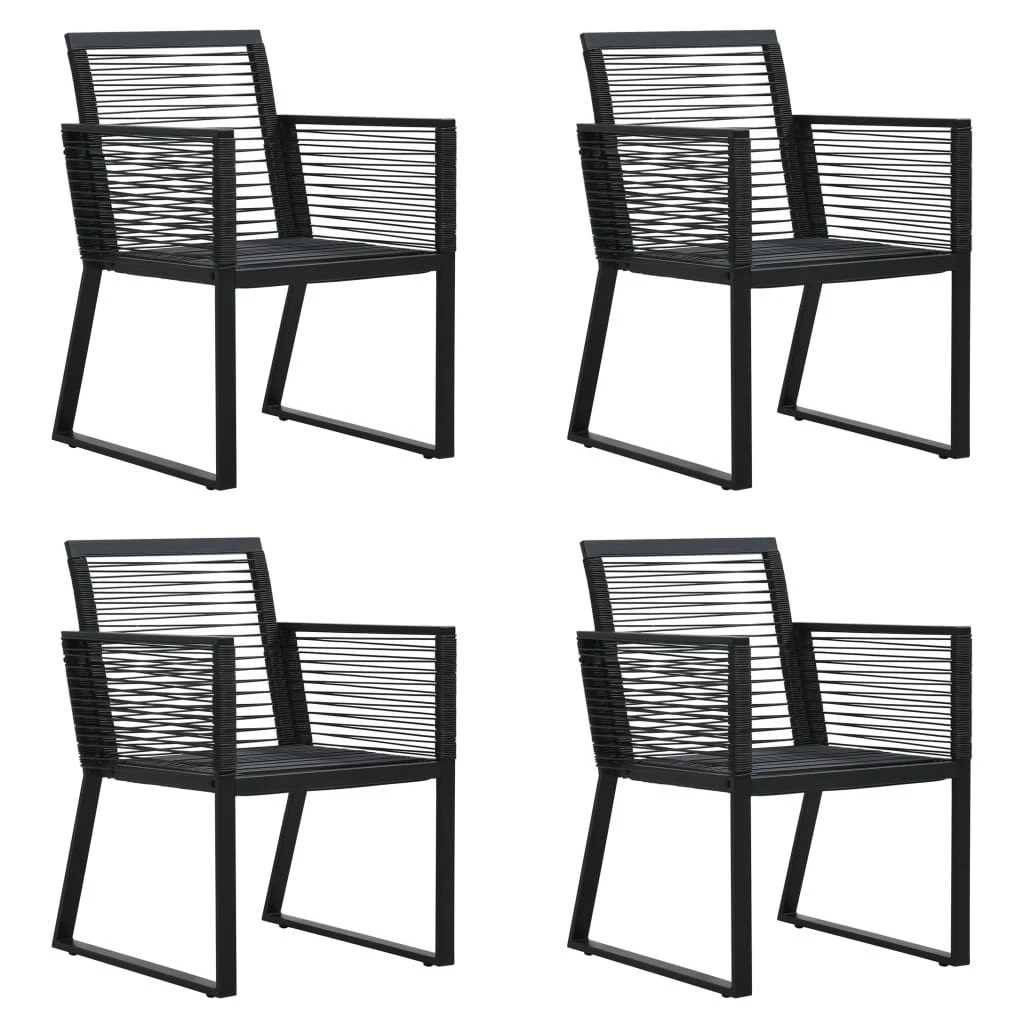 Este juego de comedor de jardín contiene 1 mesa con superficie de vidrio y 4 sillas con reposabrazos. El conjunto de muebles de comedor, con un diseño elegante y una estructura de acero duradero, es una opción perfecta para tu patio o jardín. La elegancia sencilla de este juego de comedor hará que tus cenas diarias sean especiales. Como el conjunto de muebles está hecho de ratán de PVC, es resistente a la intemperie. Además, este juego de comedor para jardín presenta una estructura de acero con recubrimiento en polvo, que hace que la mesa y las sillas sean estables y duraderas. Color: NegroMaterial: Ratán de PVC, acero con recubrimiento en polvo, vidrioDimensiones de la mesa: 80 x 80 x 74 cm (largo x ancho x altoDimensiones de la silla: 53 x 57 x 77 cm (ancho x profundo x altoAnchura del asiento: 42 cmProfundidad del asiento: 45 cmAltura del asiento desde el suelo: 39 cmAltura del reposabrazos desde el suelo: 63 cmRequiere montaje: SíLa entrega incluye:1 x Mesa4 x Sillones