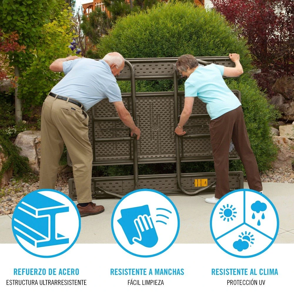 - Ligera (34 Kg, robusta y firme, las bisagras de la mesa tienen anclajes de seguridad y topes de goma antivuelco en las patas, gana espacio con LIFETIME