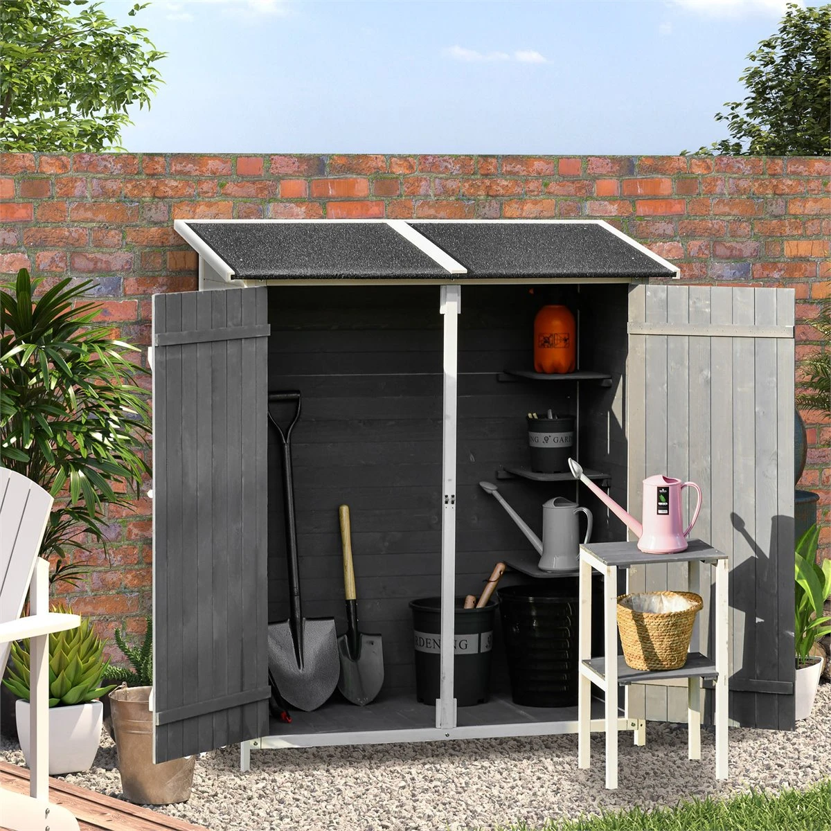 - – Esta caseta de jardín es ideal para guardar herramientas, macetas, la manguera, etc.