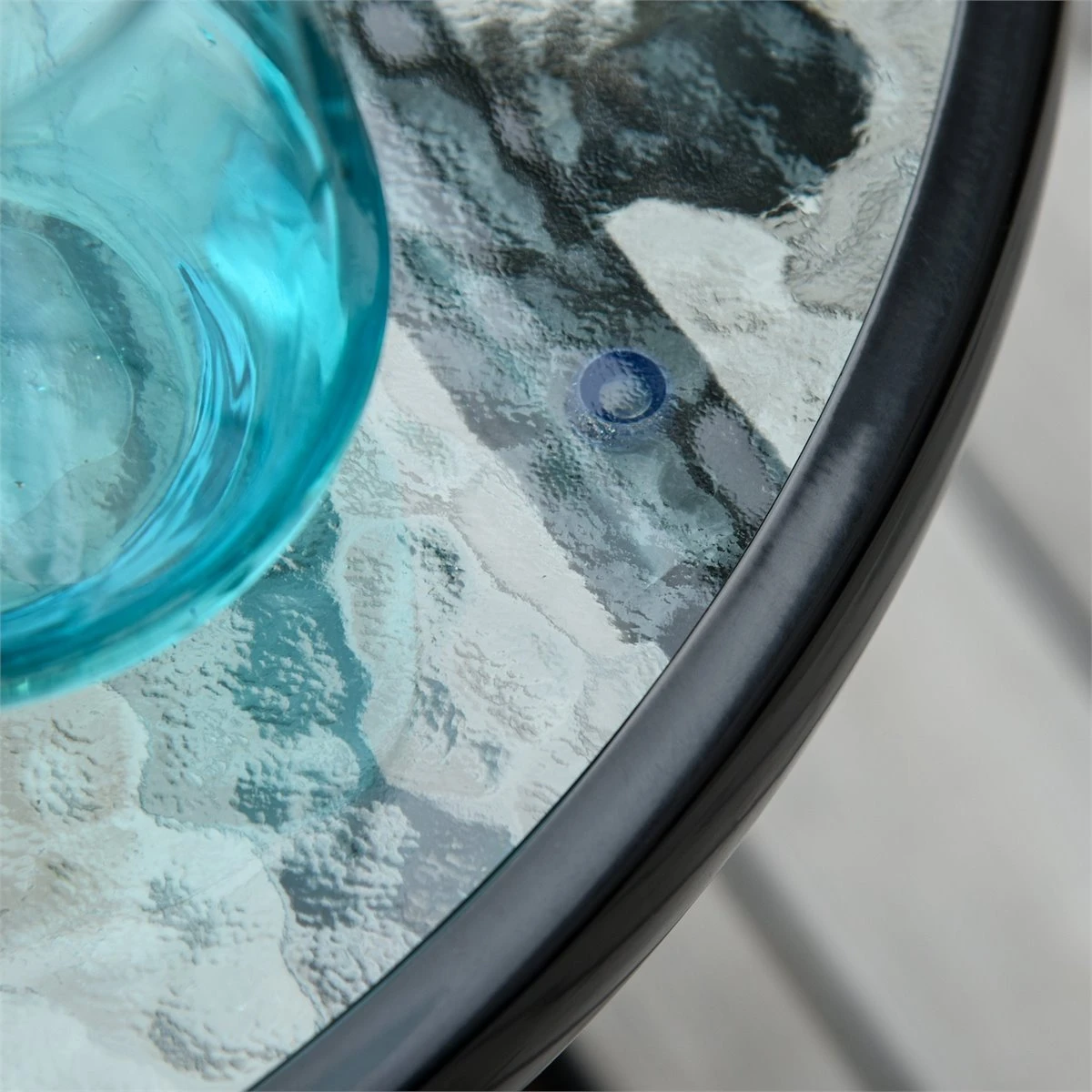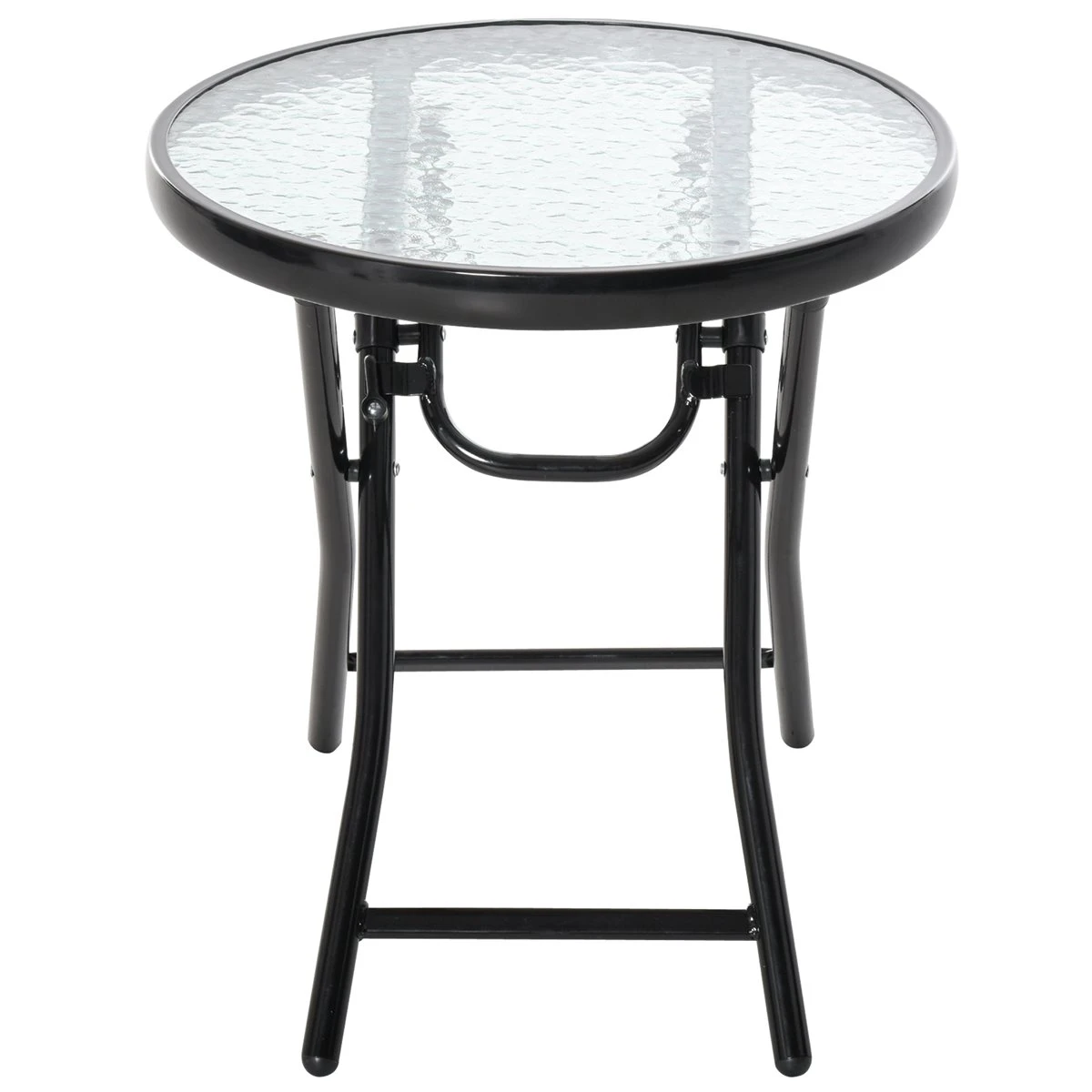 Si estás buscando una mesita auxiliar para el jardín, una mesa para poner entre tus tumbonas o al lado de tu balancín, esta de Outsunny te interesará. Es plegable, no ocupa apenas espacio, y cuenta con una hebilla de seguridad para evitar un plegado accidental. Con estructura de metal resistente y encimera de cristal templado con fino relieve como si fueran ondas del mar, que crea una superficie antideslizante y fácil de limpiar.